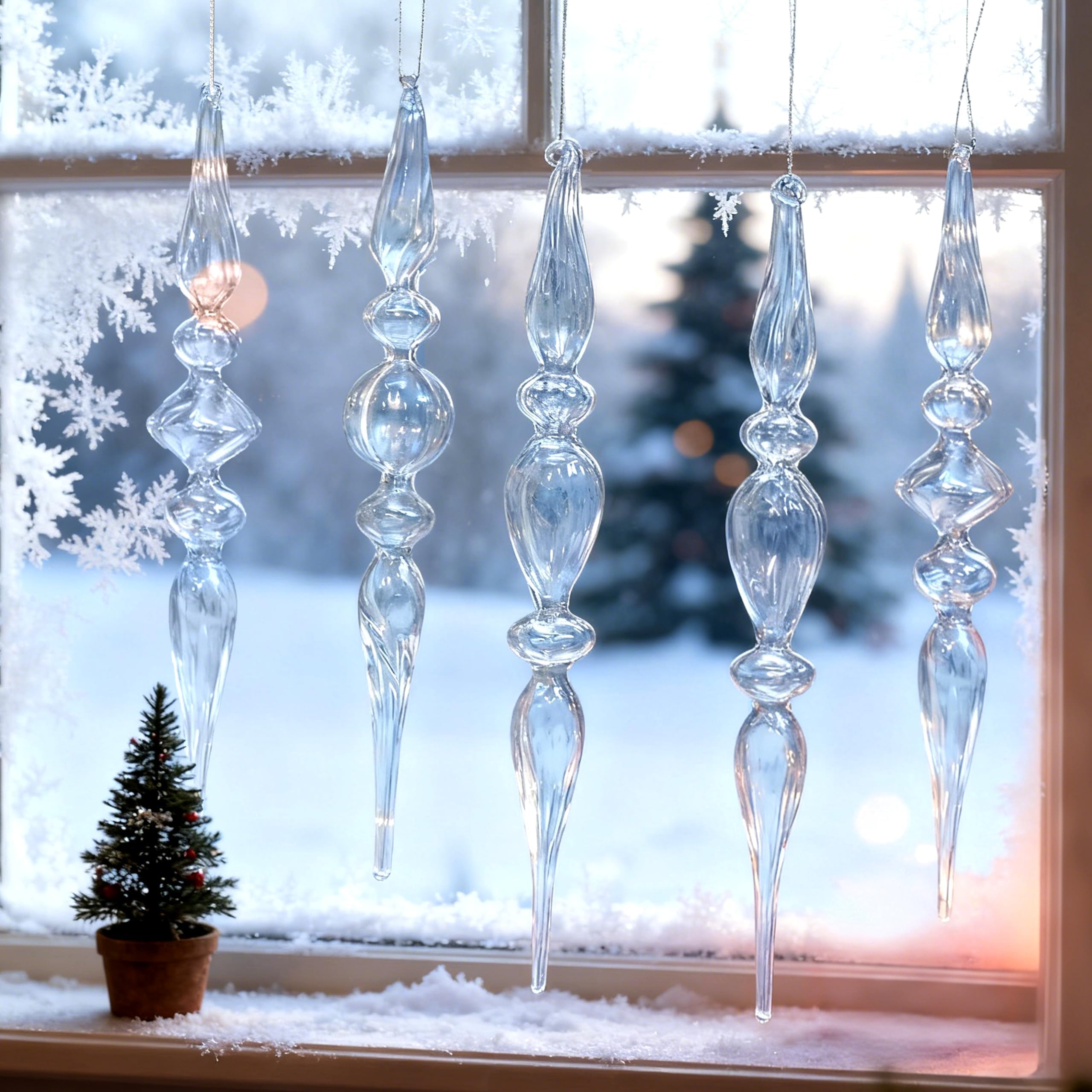 10 Inch Christmas Glass Finial Ornaments for Tree, 6Pcs Clear Glass Hanging Crystal Ornaments, Assorted Xmas Hanging Icicle Decor for Christmas Tree Winter Wonderland Wedding New Year Party Decor