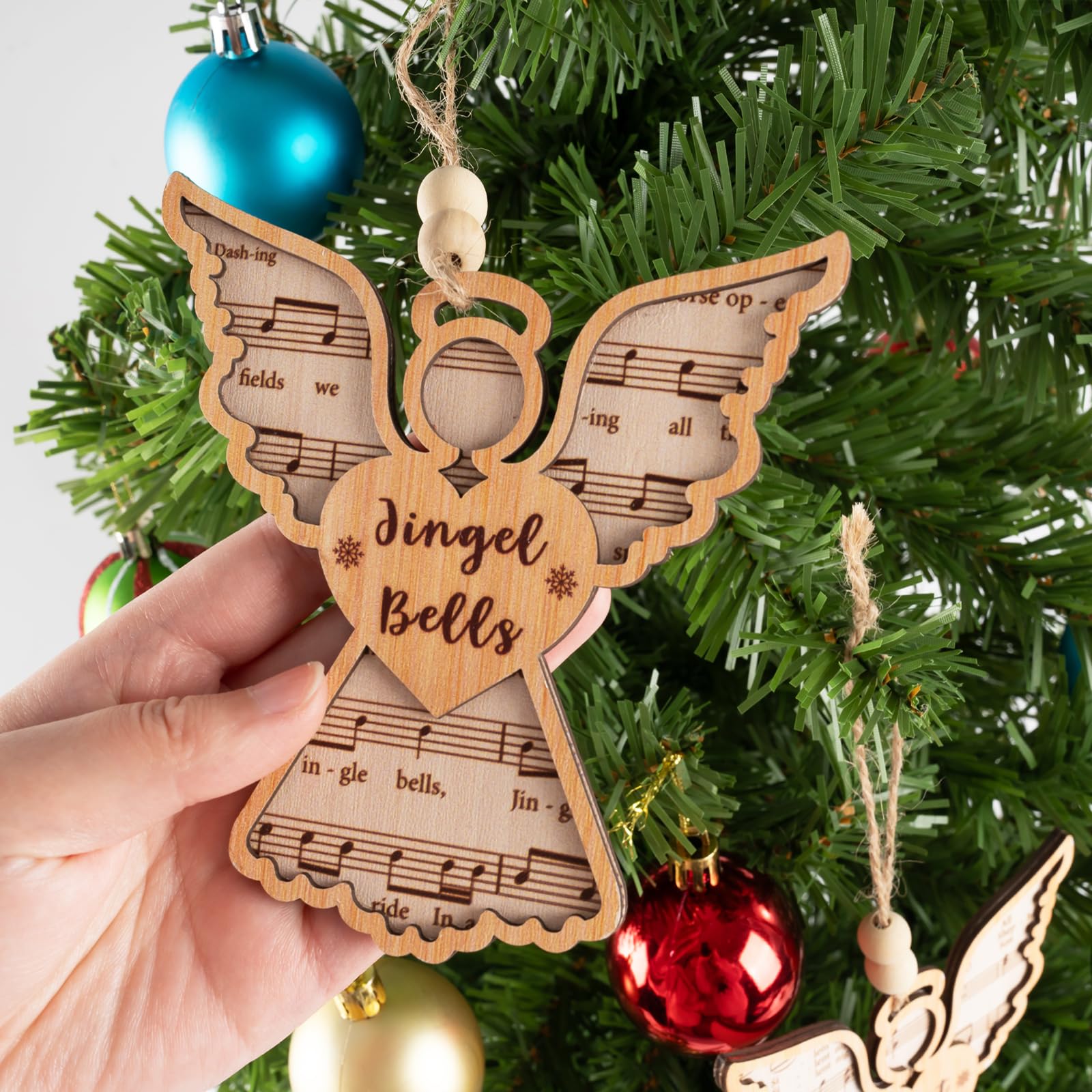 - Easy Hanging with Extra Details: Complete with 6 hemp ropes and 12 wooden beads, this set lets you personalize each ornament. Threading the beads onto the ropes adds a rustic touch and makes it easy to hang the angels on Christmas trees, wreaths, fireplace mantels, doors, or windows at homes, schools and offices for effortless holiday decorating