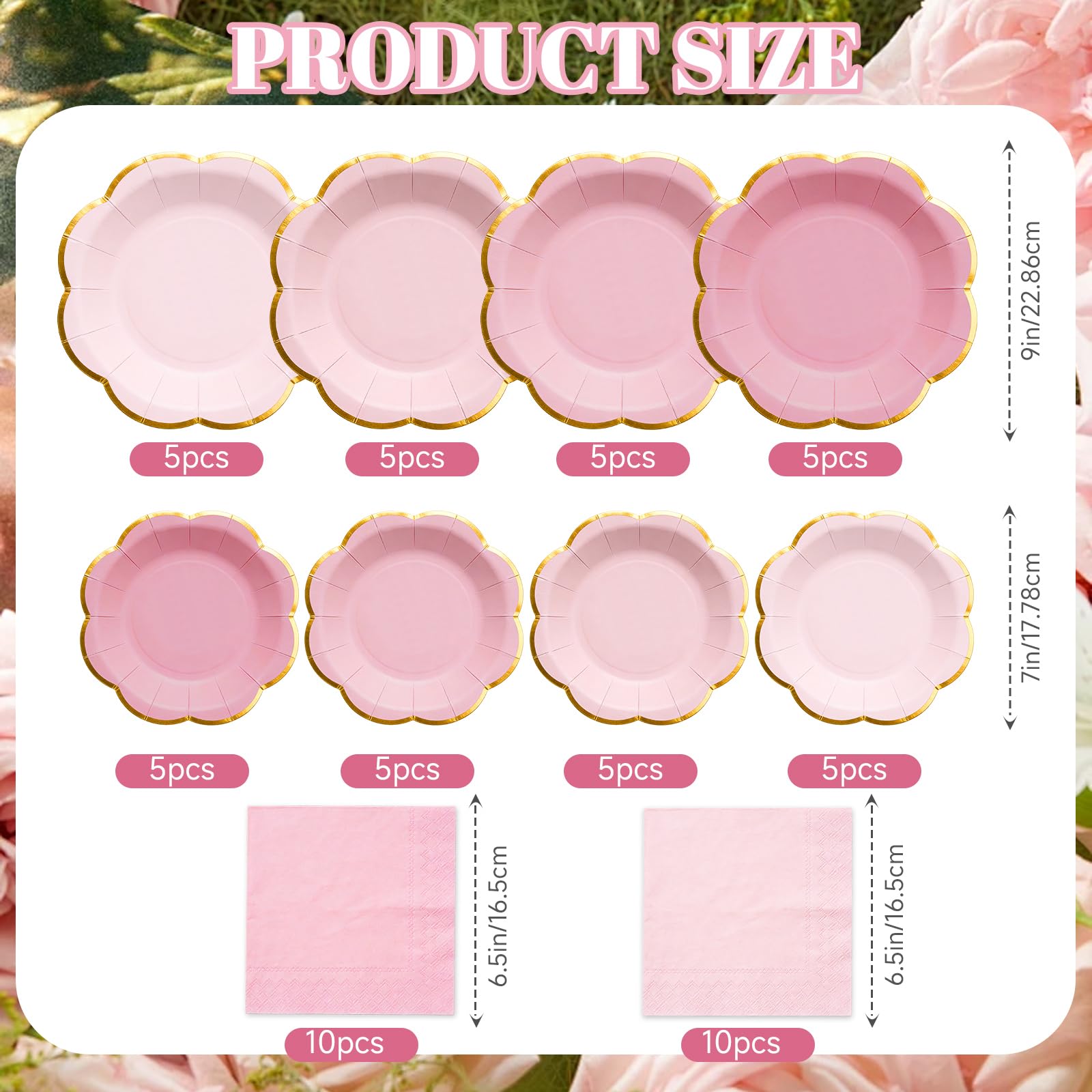 - PINK PARTY SUPPLIES FOR 20 GUESTS: This pink party plates set serves 20 guests, including 20 × 9" pink paper plates (4 colors), 20 × 7" pink dessert plates (4 colors), 20 × 6.5" pink napkins — perfect for creating a coordinated pink party table setup.